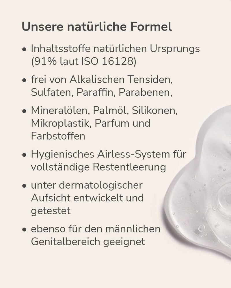 Das parfümfreie Intimwaschgel reinigt sanft, spendet Feuchtigkeit und unterstützt den pH-Wert des Intimbereichs